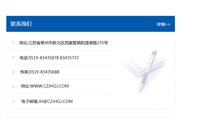 地址:常州市新北區友邦商務大廈1幢16、17層  電話:0519-85101652  傳真:0519-85112595  郵編:213022  網址:www_cz-jiayue_cn.aksmdq.com  郵箱:xiajifengaa@163.com